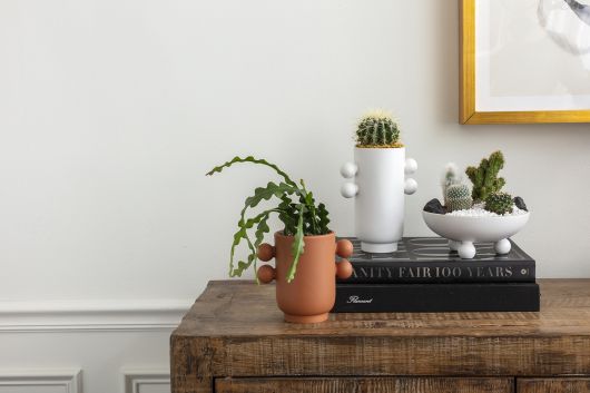 La Base Farley ofrece una silueta divertida con un color blanco mate que contraste con el color en el interior. Las esferas a los lados y su pie le dan un estilo moderno y divertido. Dos tamaños disponibles.