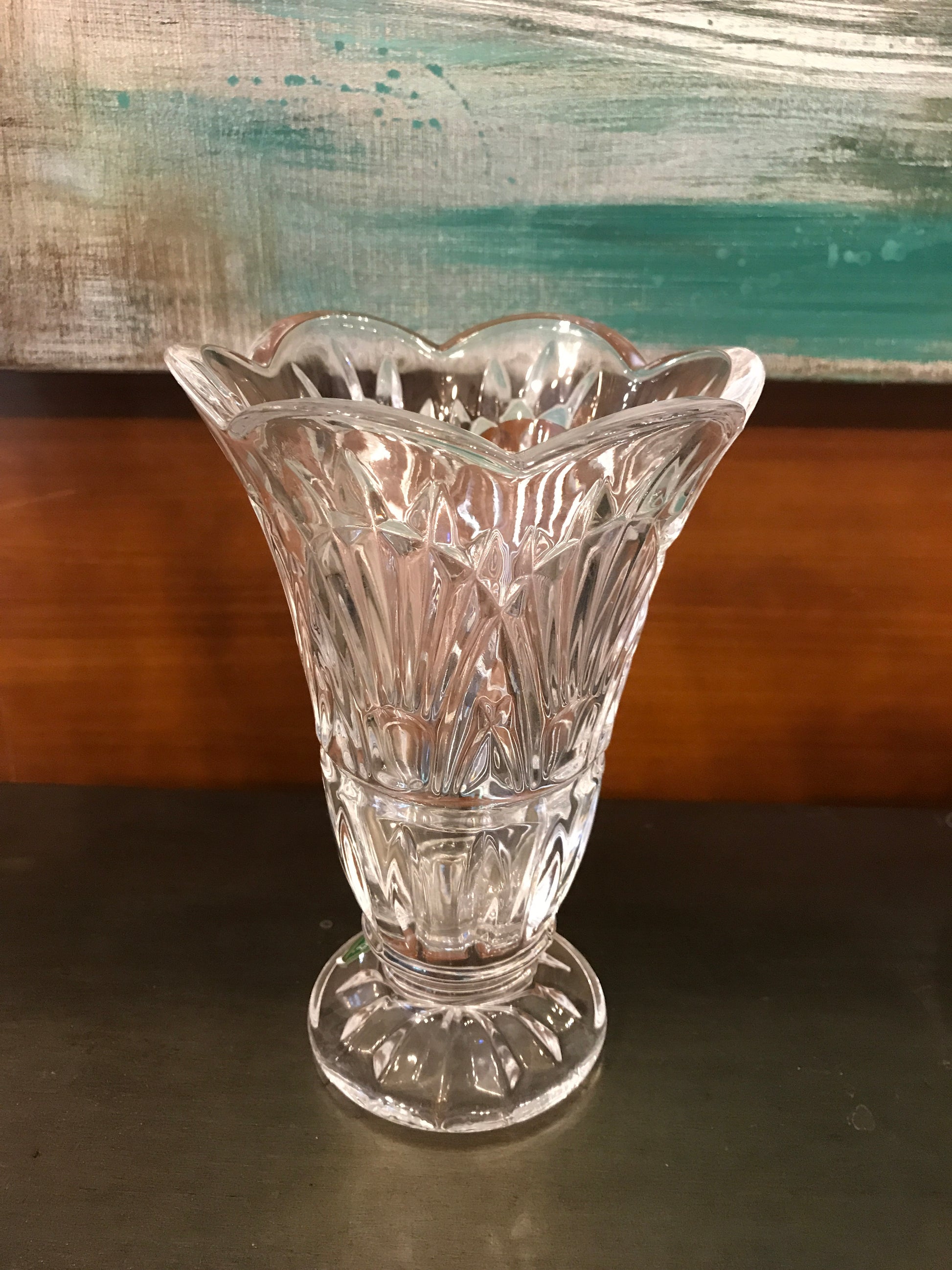 Base tipo florero de cristal cortado 19 cm de alto. Base 9 cm de diámetro