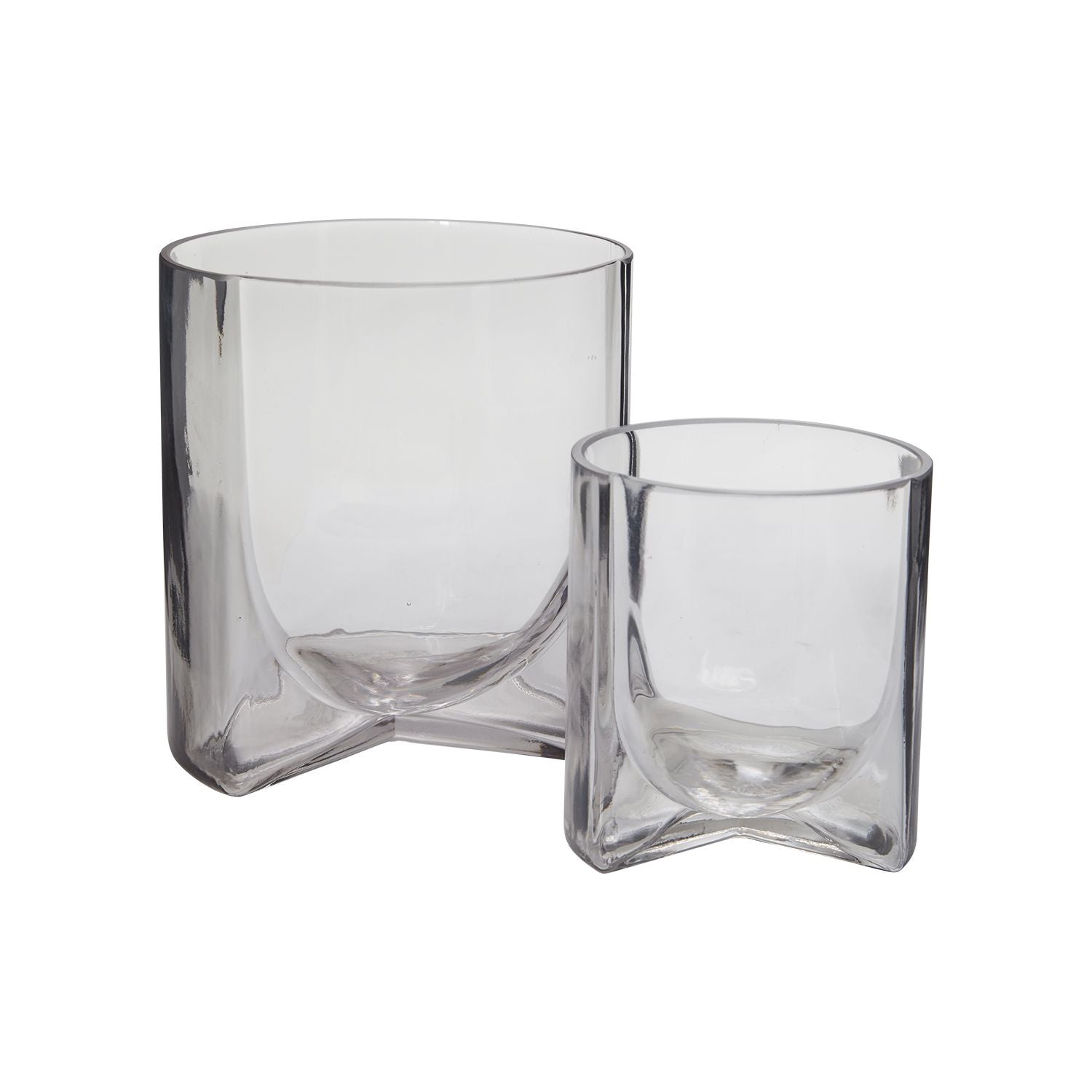 Base de cristal transparente con forma irregular tipo cilíndrica ancha con formas irregulares que simulan patitas. Dos tamaños disponibles.