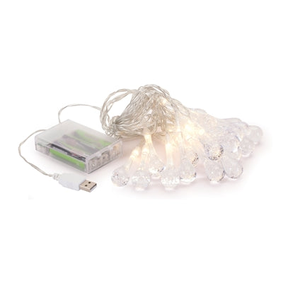 Decoración colgante de cristales transparentes con luz. 8 tiras. Extensión de 4.5 m de largo.