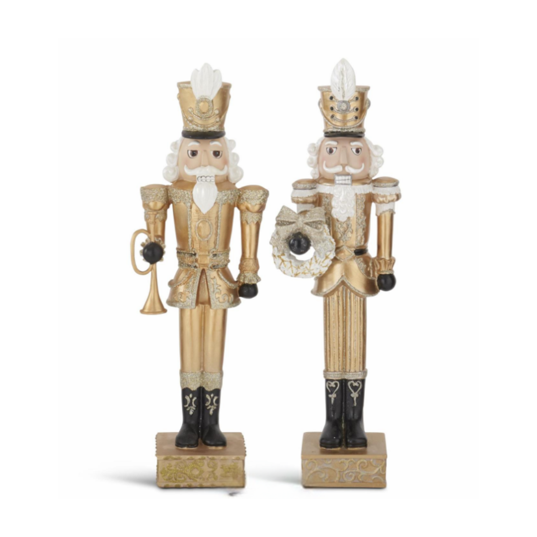 Set de dos cascanueces de resina decorados en negro/dorado 53 y 56 cm de altura respectivamente.