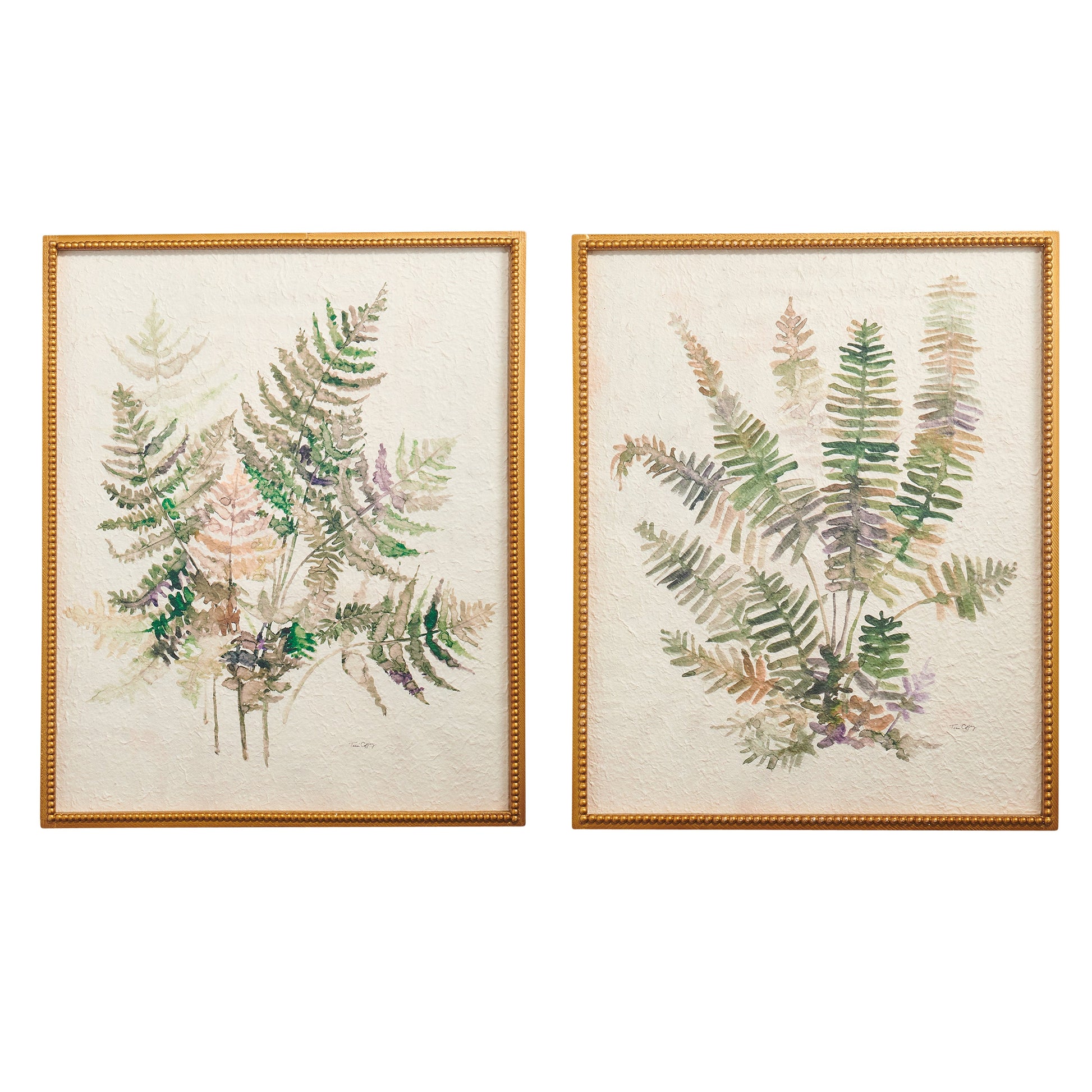 Cuadro Decorativo de pared. Hojas verdes diferentes variedades tipo acuarelas en superficie con textura 71 cm de largo con marco dorado con textura de cuentas. Dos diseños disponibles se venden por separado.