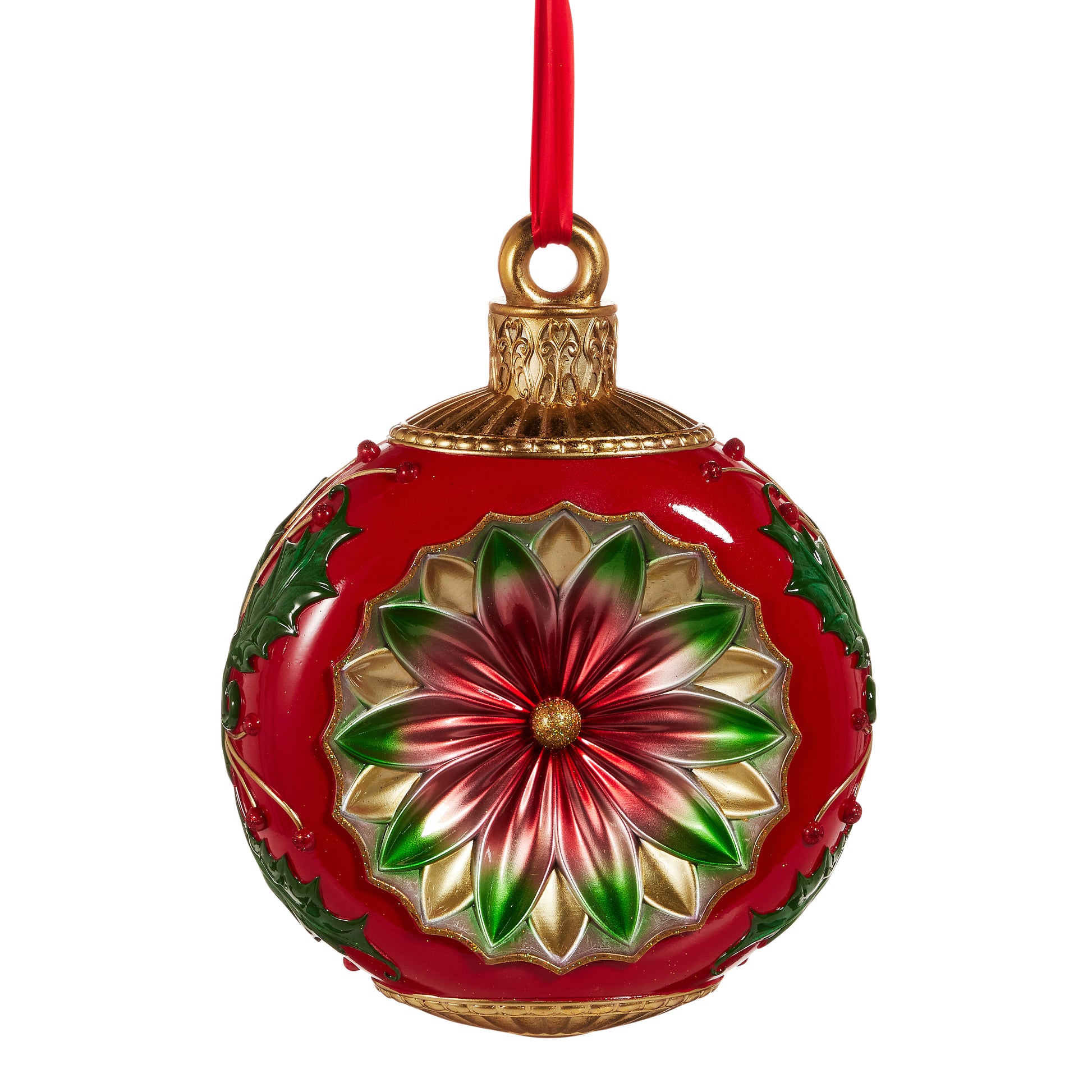 Esfera colgante navideña de resina en colores tradicionales de estilo vintage. 38 cm de diámetro