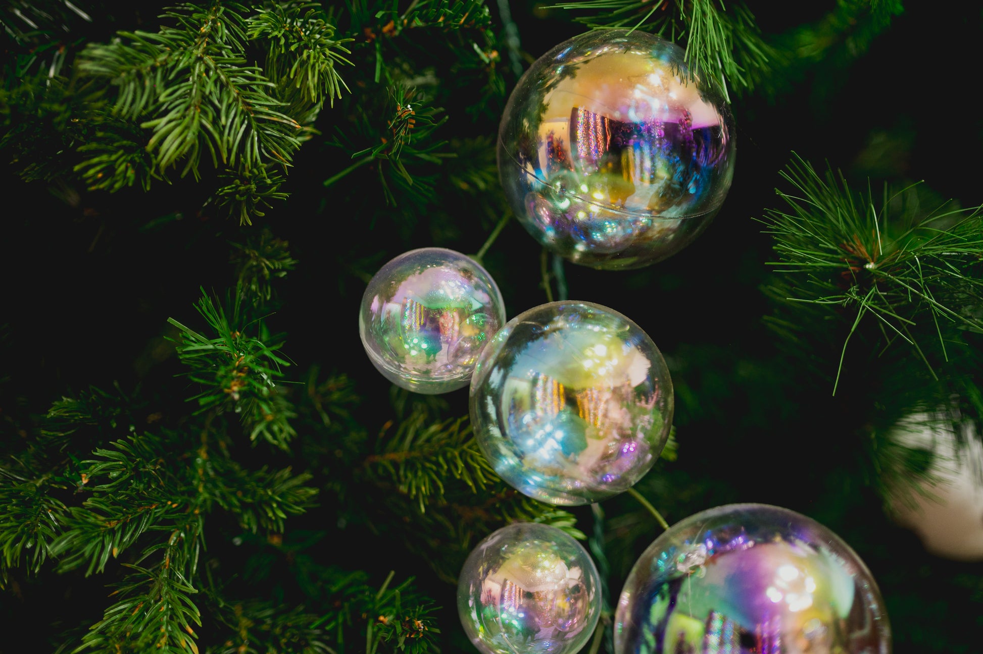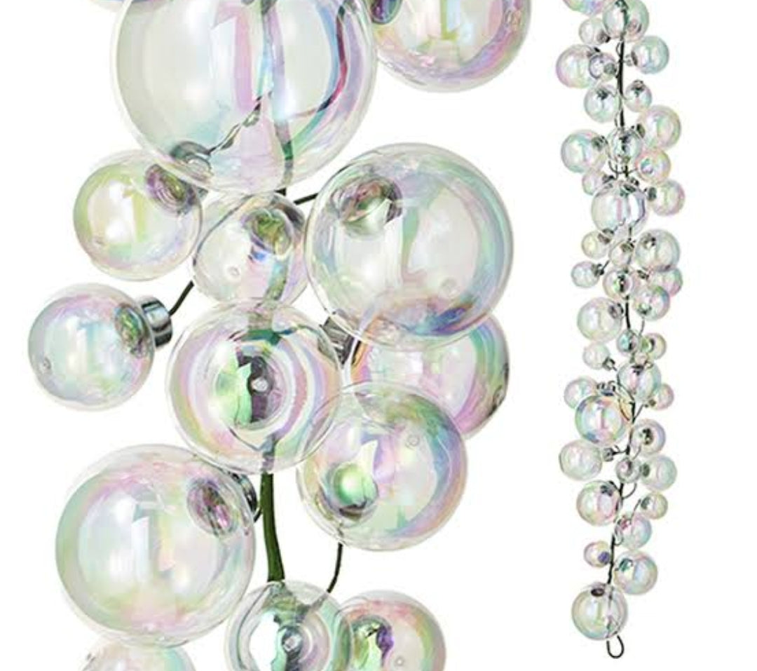 Guirnalda de esferas transparentes de apariencia tornasol. 10' de longitud = 3 mt
