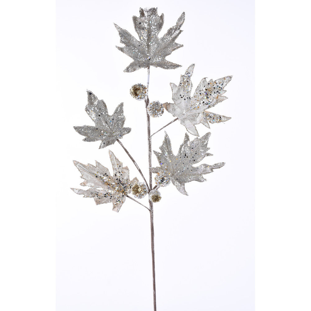 La Hoja Maple Platinum es la decoración navideña perfecta para cualquier hogar. Esta rama con aplicaciones de cristales y brillos es un símbolo de elegancia y belleza, y de 78cm de largo, le regala a tu residencia el aire festivo que deseas. ¡Celebra la Navidad con la Hoja Maple Platinum!