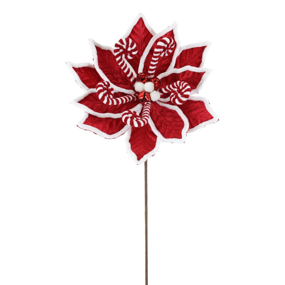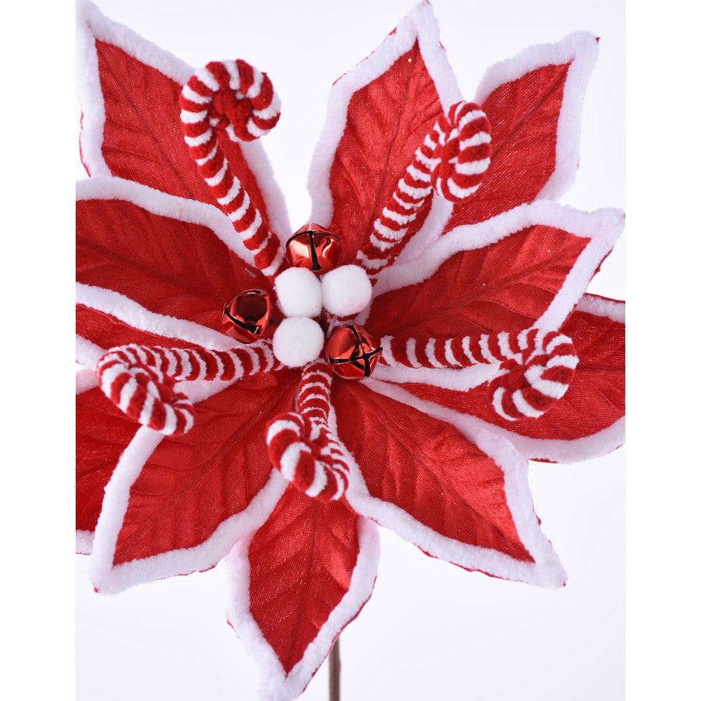 Nochebuena decorativa navideña en colores rojo y blanco. 56 cm de largo