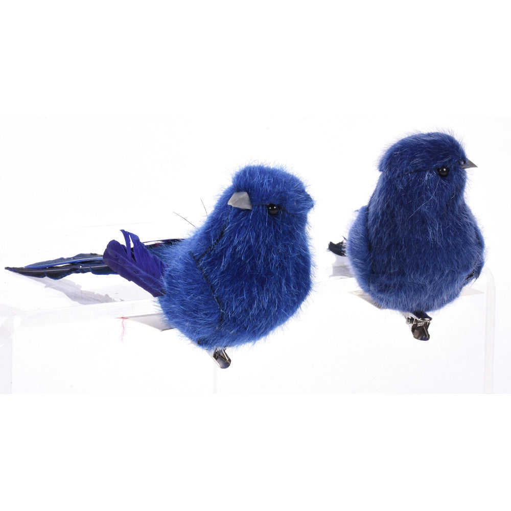 Pajarito azul marino con plumas y clip en la base. 6.5"