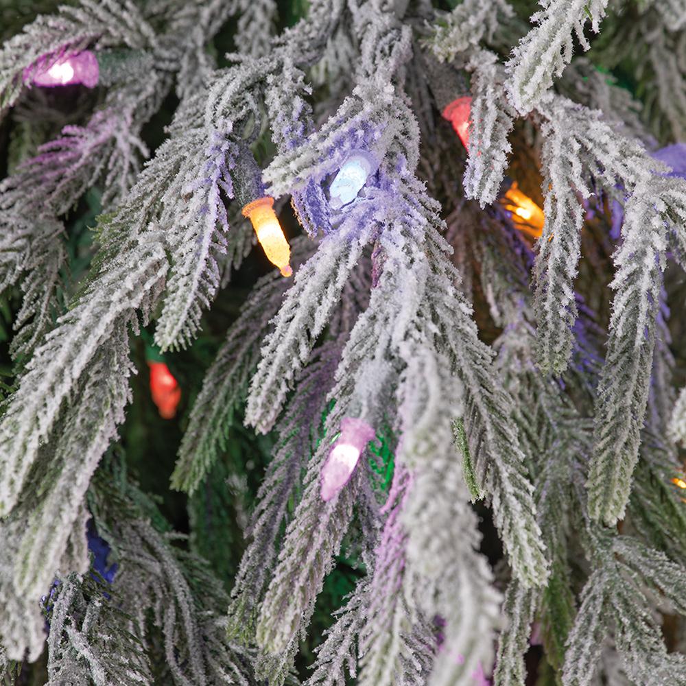 Pino Navideño Artificial Escarchado 228 cm de alto x 152 cm de ancho. 1131 puntas/750 luces LED multifuncionales blánco cálido o multicolor con control remoto.