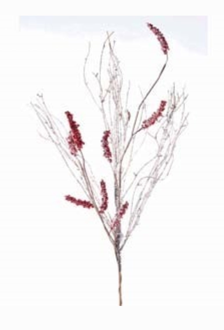 Vara decorativa de troncos con frutillas rojas nevada 34"