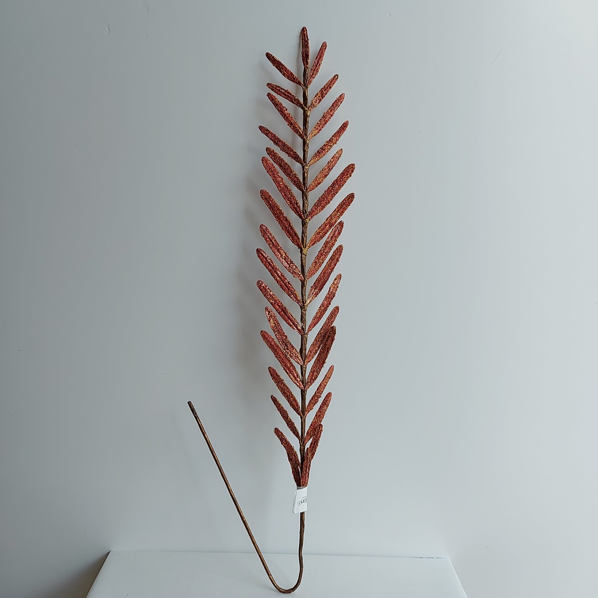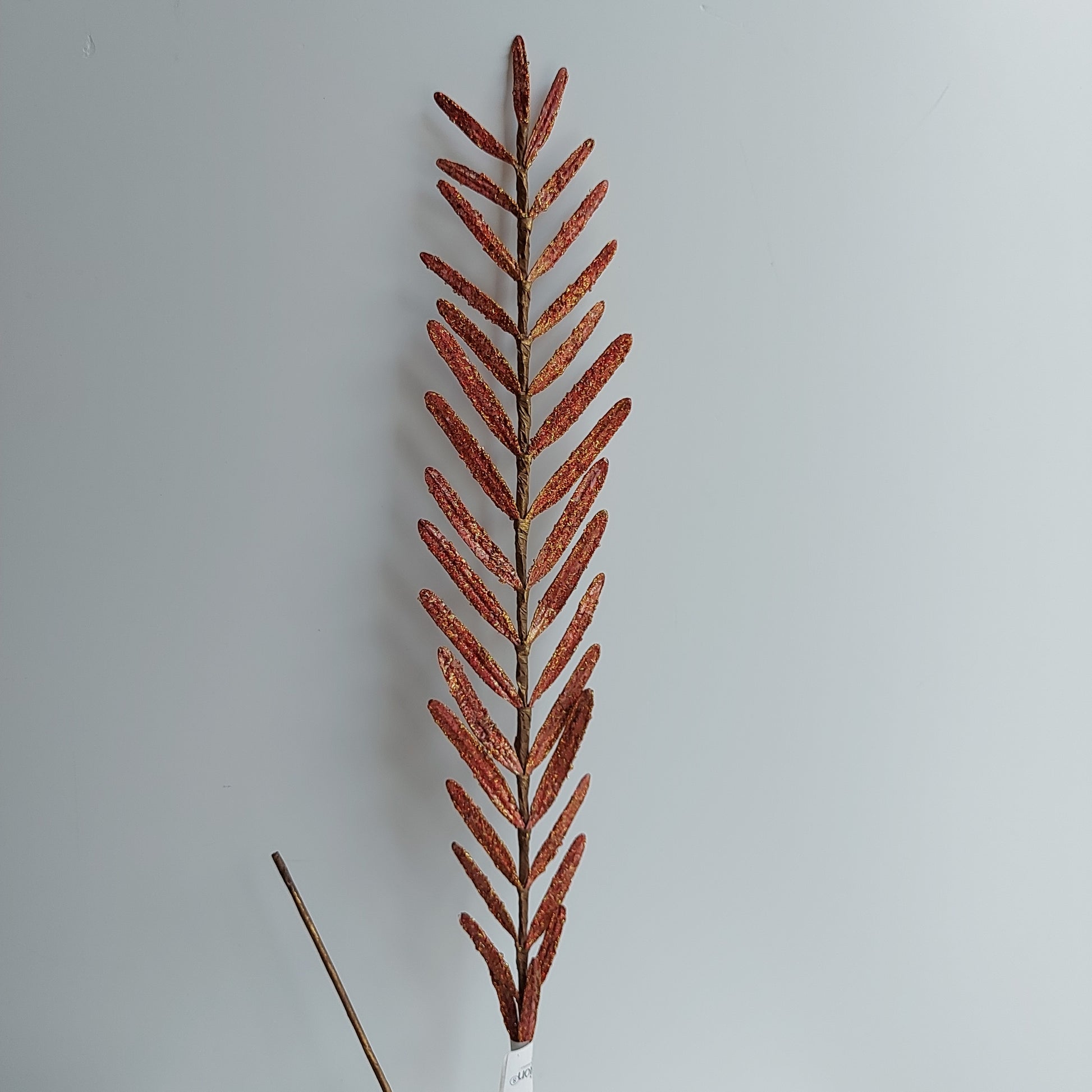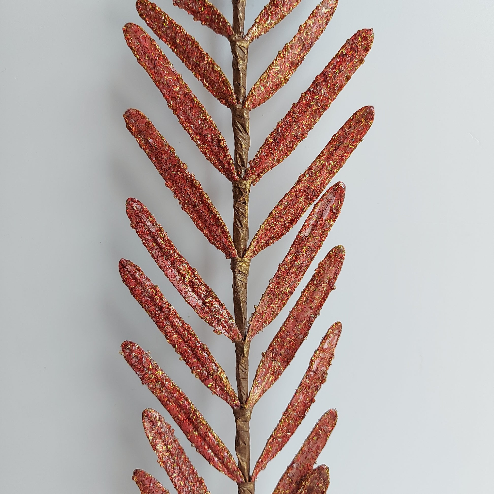 Vara decorativa tipo palma en color rojo con glitter. 80 cm de largo
