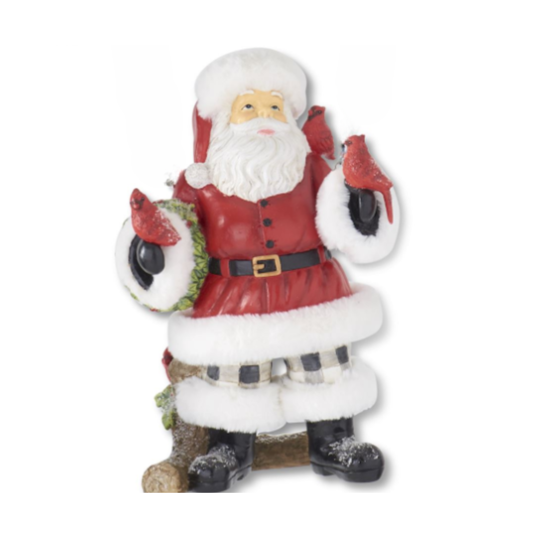 Figura tradicional de Santa Claus con pantalón a cuadros blanco y negro. 38 cm de altura.