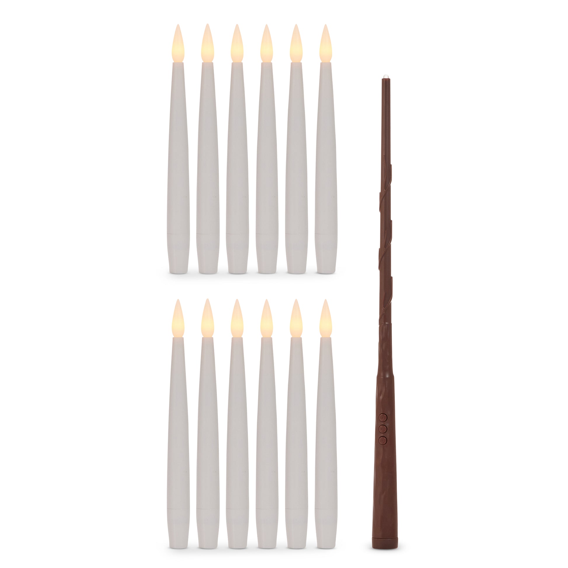 - Caja de 12 velas blancas, varita mágica y control remoto
