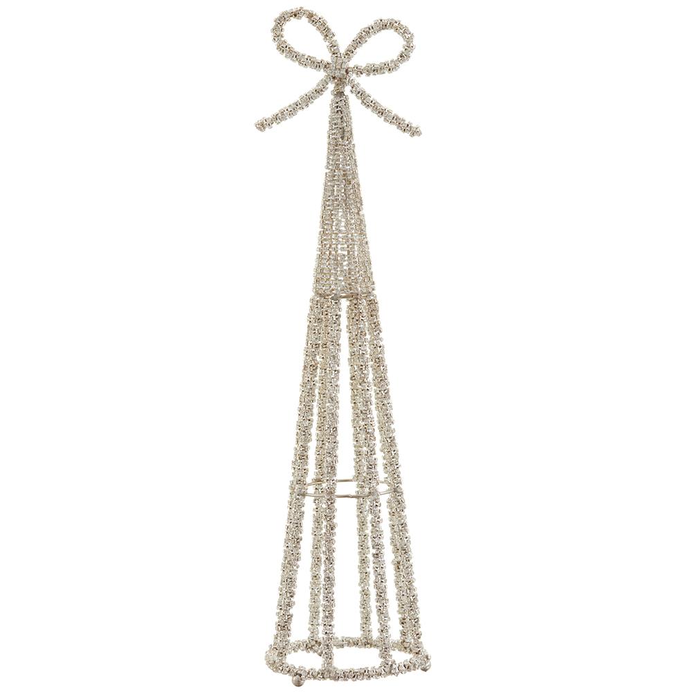 Decoración Navideña, estructura en forma de pino con moño en la punta, para decorar mesas y encimeras. 48 cm de alto